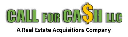 Sell your house to Call for Cash llc. We are a real estate acquisitions company providing you a fair market offer in less than 7 minutes. Our mission is to help sell your home fast, and without the burden of showings and costly commissions. This means more money in your pocket, and in most cases we even pay the closing costs saving you thousands more. Additionally, we close on your timeline, so you pick the closing date.